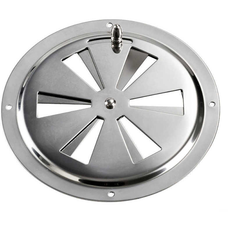 Aeratore circolare diametro 102 mm in acciaio inox lucidato con chiusura a rotazione.
