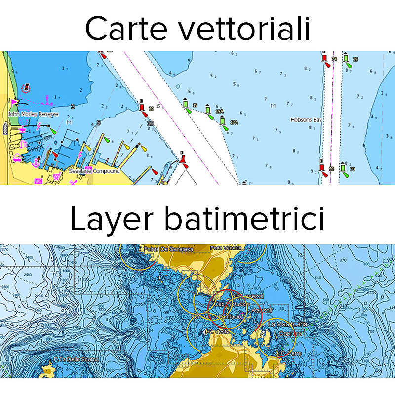 La cartina nautica C-Map 4D offre una gamma completa di informazioni, tra cui profondità, contorni, punti di scandaglio, aiuti alla navigazione (NavAids), settori luce, relitti, ostacoli e altro ancora. Visualizzano il livello più alto di dettagli, consentendo di impostare profondità di sicurezza e di identificare pinnacoli sottomarini, sporgenze e canyon, che fungono da magneti per la fauna costiera.