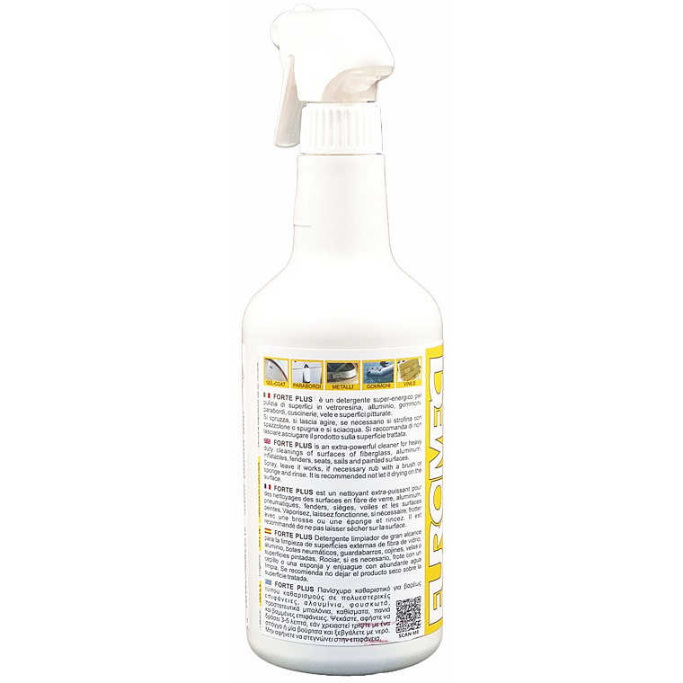 FORTE PLUS è il detergente nautico super-concentrato di Euromeci formulato per la pulizia intensiva di tutte le superfici marine.