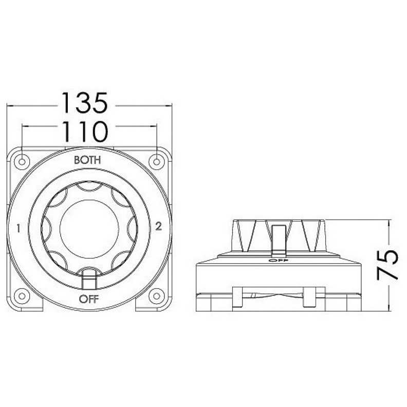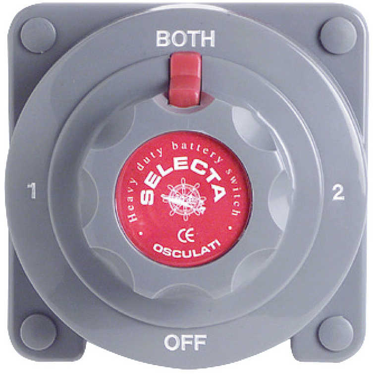 L'Interruttore/Deviatore Batteria SELECTA è un dispositivo essenziale per la gestione selettiva di sistemi a doppio banco batteria. Permette la selezione rapida e sicura tra i banchi e l'interruzione completa (OFF).