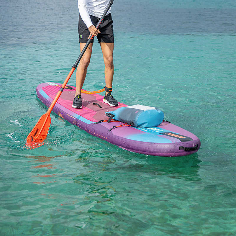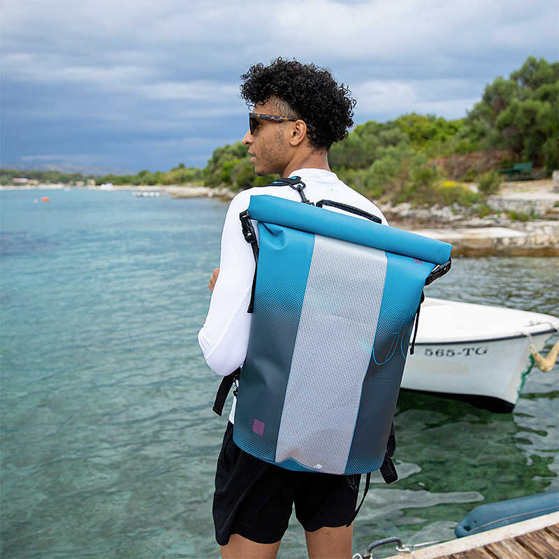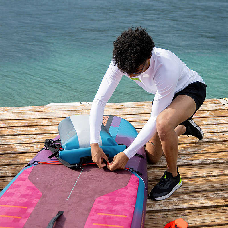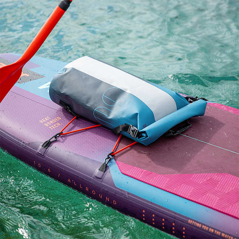 Inoltre, è equipaggiata con 4 clip, ideali per fissare la borsa alla tua tavola SUP. La cinghia regolabile sul petto offre un'ulteriore comodità, permettendoti di trasportarla facilmente come uno zaino.