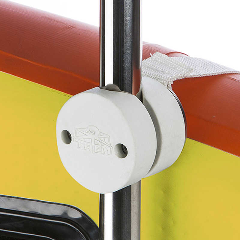 Al centro del design ci sono i morsetti regolabili a 360°, realizzati in robusto ABS bianco ad alta resistenza. Questi morsetti si adattano con precisione a tubi con un diametro compreso tra 22 mm e 30 mm, rendendo il sistema perfettamente universale per qualsiasi imbarcazione.