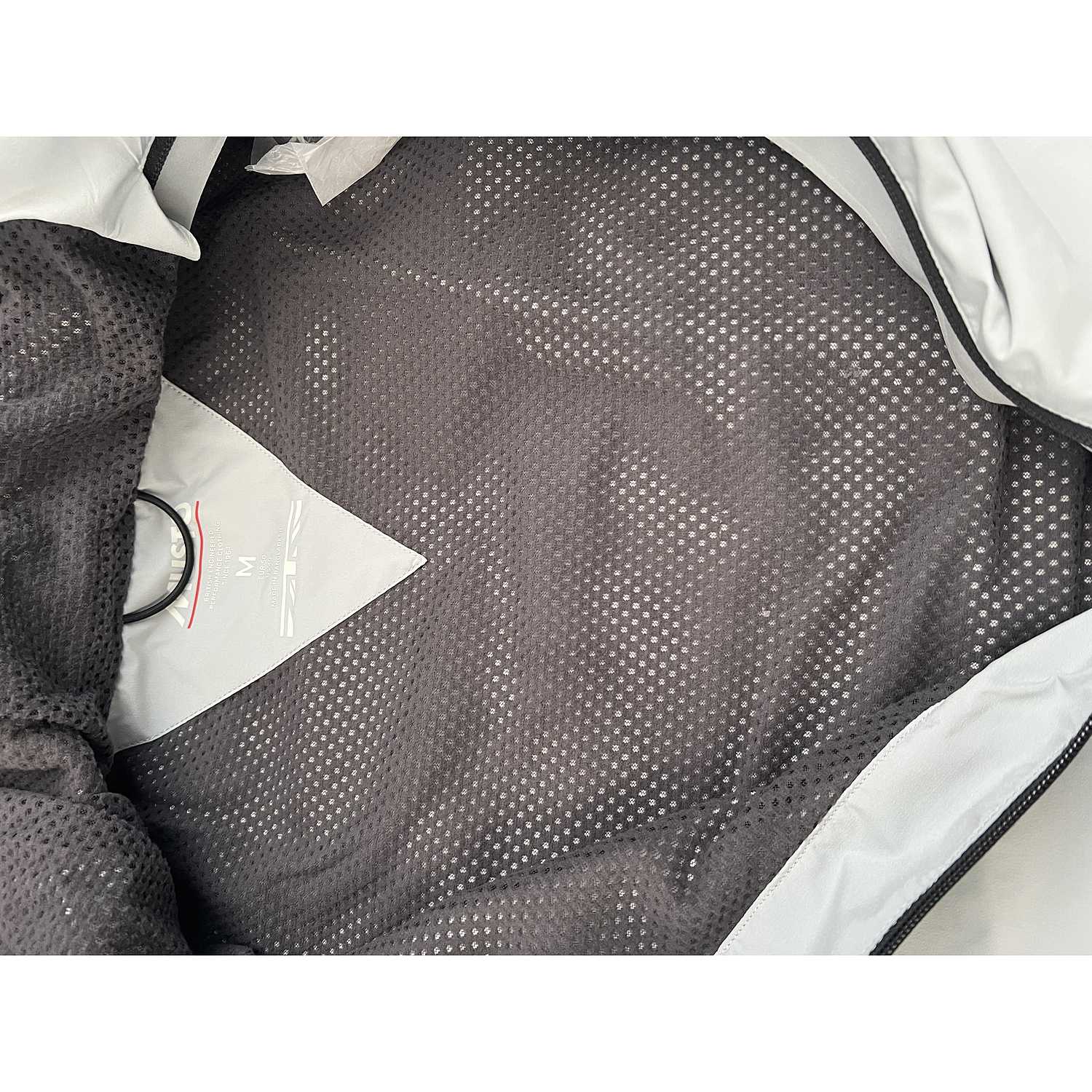 La fodera interna in mesh assicura una ventilazione ottimale e un comfort prolungato, rendendo il capo ideale per l’uso durante tutto l’anno. Il cappuccio aderente offre ulteriore protezione senza rinunciare alla leggerezza e alla libertà di movimento.