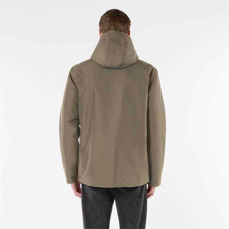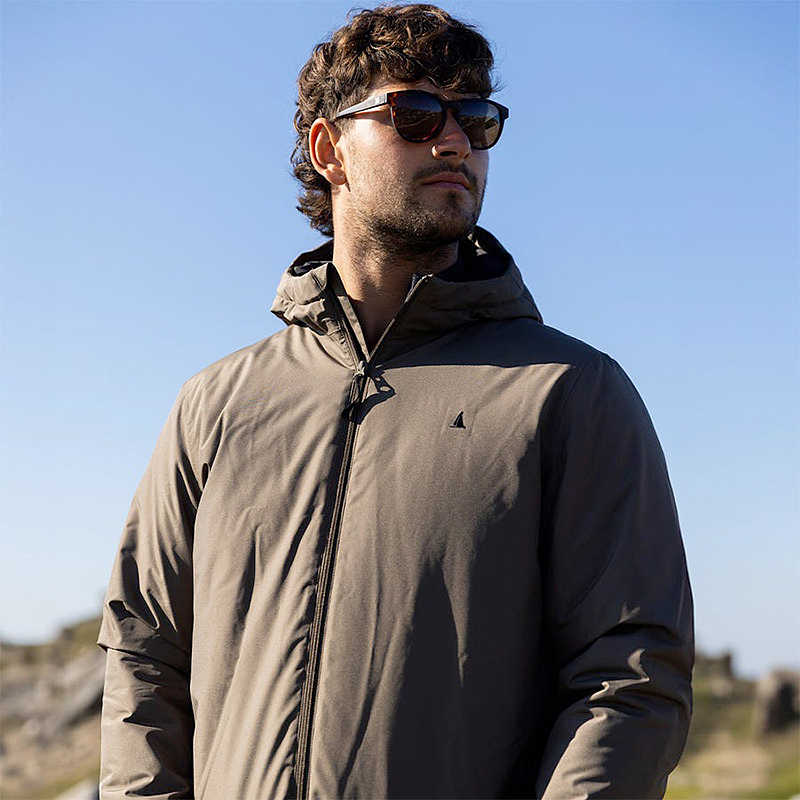 Il cappuccio regolabile si modella perfettamente intorno al viso, sigillando il calore e la protezione, mentre la consapevolezza di indossare un capo realizzato con materiale riciclato e certificato bluesign® aggiunge un ulteriore strato di benessere.