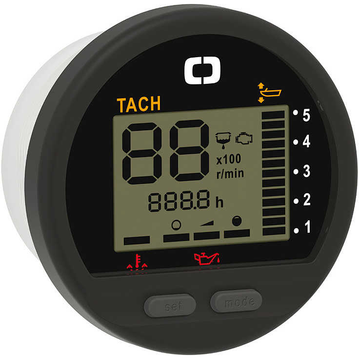 Integra in un unico dispositivo la visualizzazione di livello olio, contagiri (RPM), tachimetro, temperatura olio e temperatura acqua, offrendo un controllo completo del motore in tempo reale.