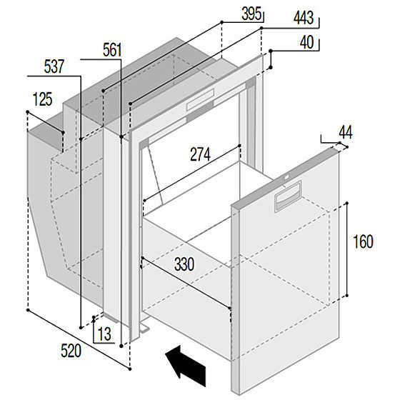 - Dimensioni frigorifero: 44,3x52 h.57,4 cm.