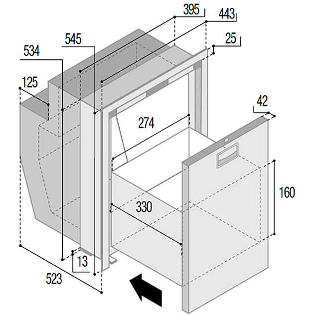 Il frigorifero DW51i è un frigorifero-freezer a cassetto in acciaio inox della serie OCX2, realizzato per la refrigerazione principalmente delle bevande.