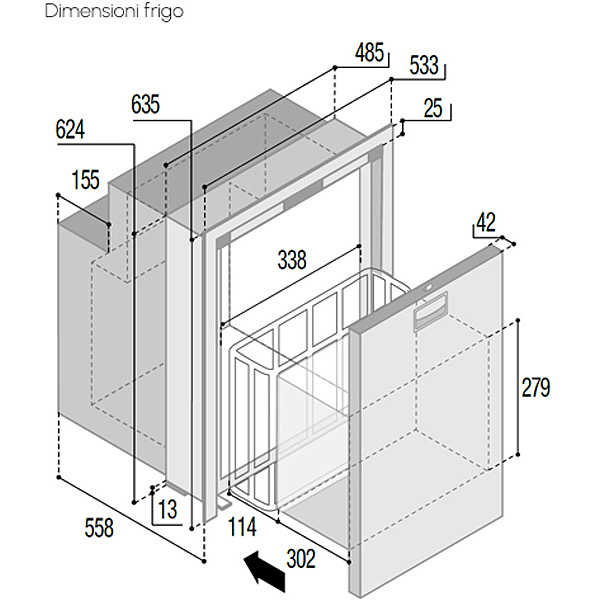 - Dimensioni frigorifero: 53,3x57,3 h.66,5 cm