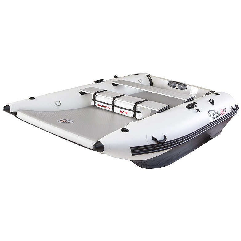 Il Safety Tender 6.0 VSG offre uno spazio calpestabile di ben 1,8 m², un record per un battello di questa categoria. Le due pinne stabilizzatrici gonfiabili, collocate sotto i tubolari, assicurano stabilità eccezionale, maggior velocità di planata e consumi ridotti.